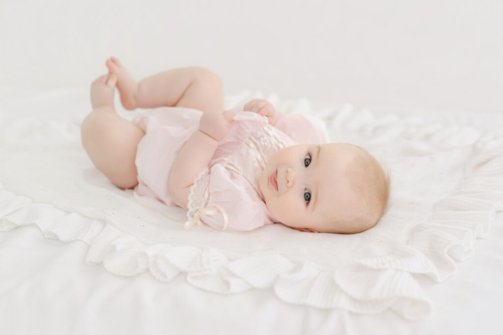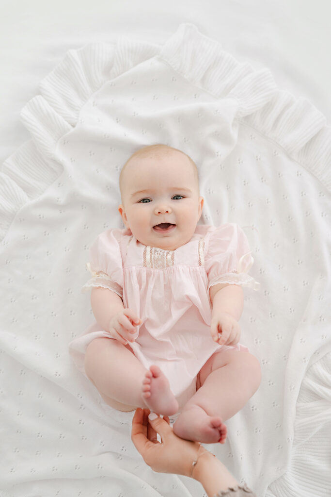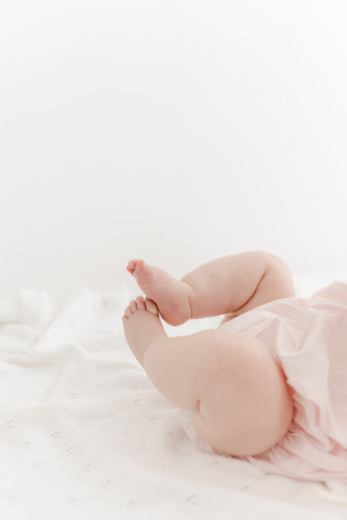 Tip: The younger babies may not be playing with their feet as well as the ones closer to 7 or 8 months. If that’s an important shot you may want to push your session back a month or so. Little Lowen had just turned 6 months and wasn’t interested in holding her feet long enough for a shot.