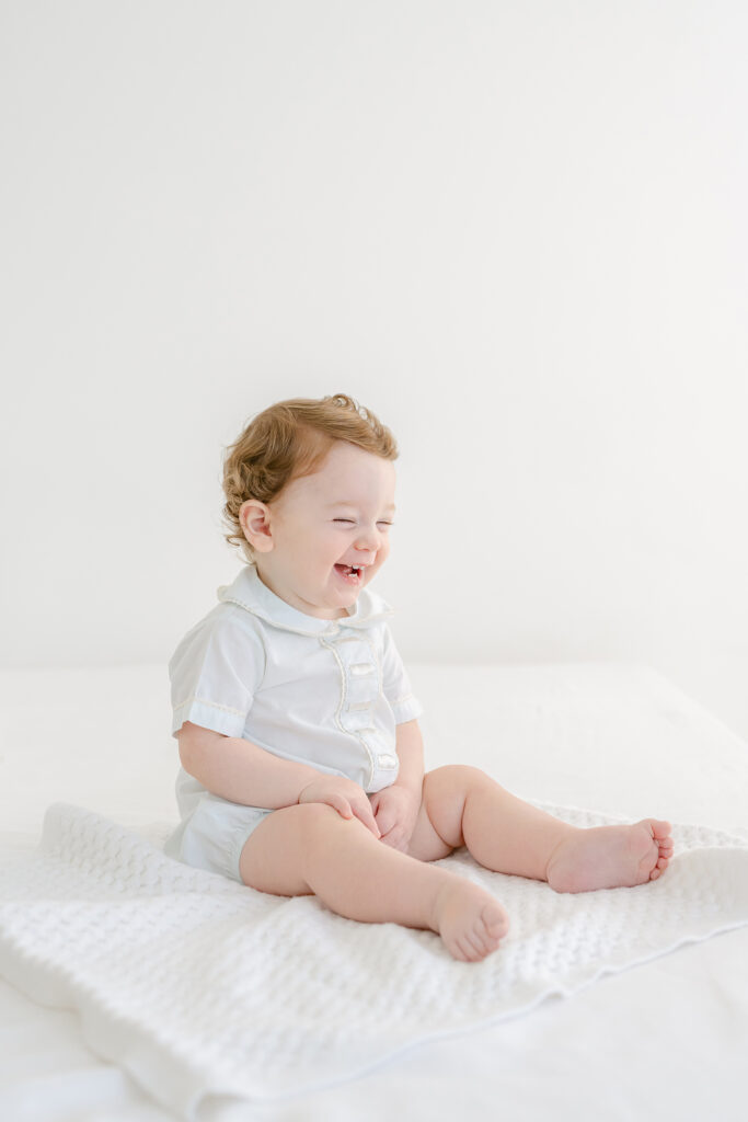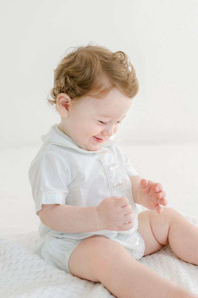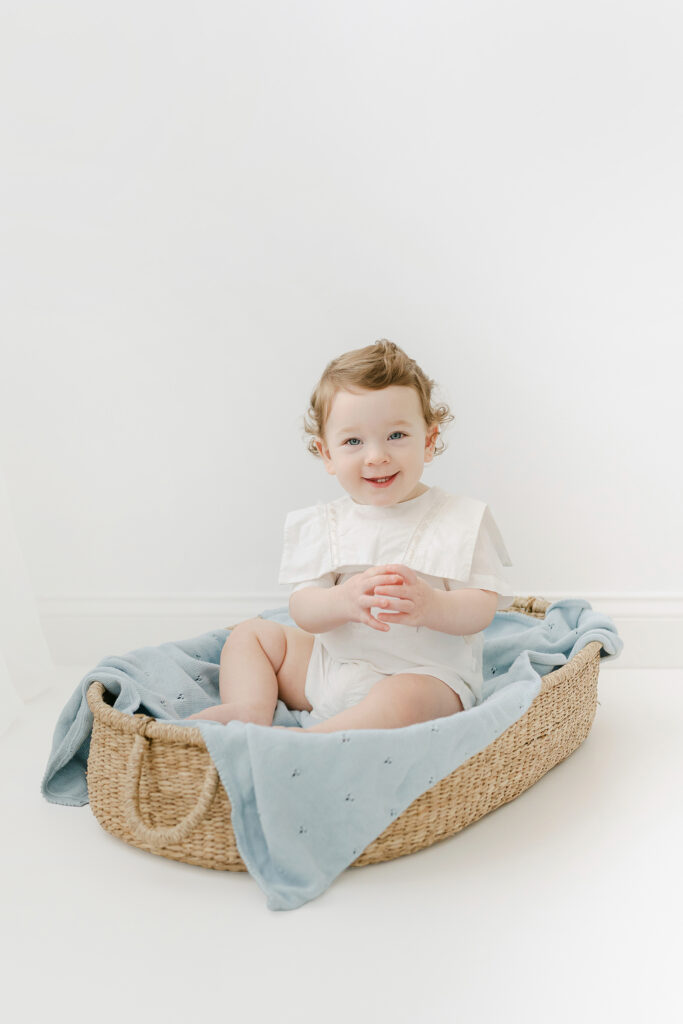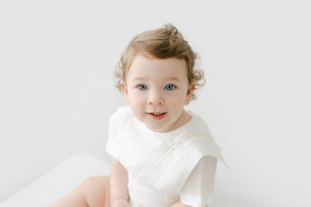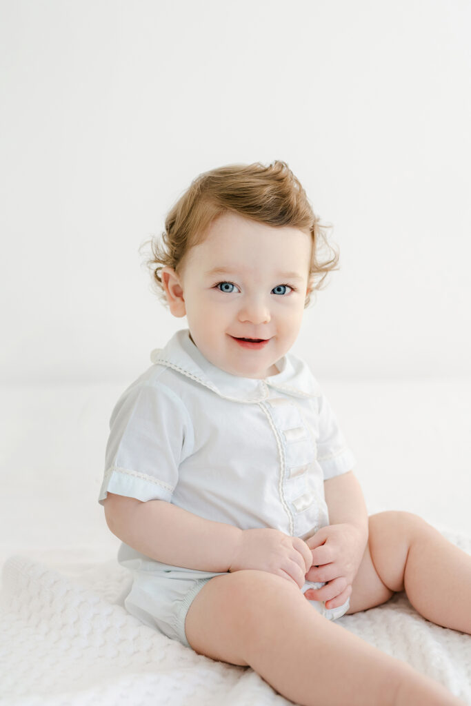 For Baby H’s session we kept things simple and classic. The clean white studio backdrop let him be the star. No busy props. No clutter. Just him.