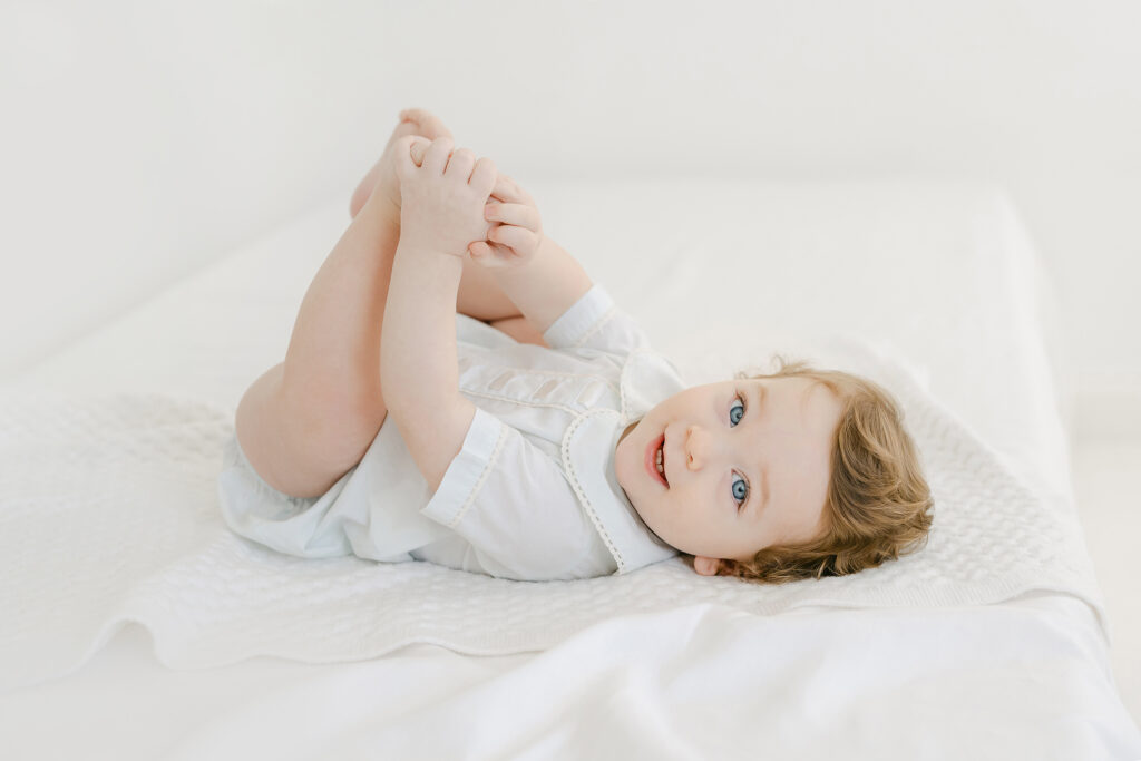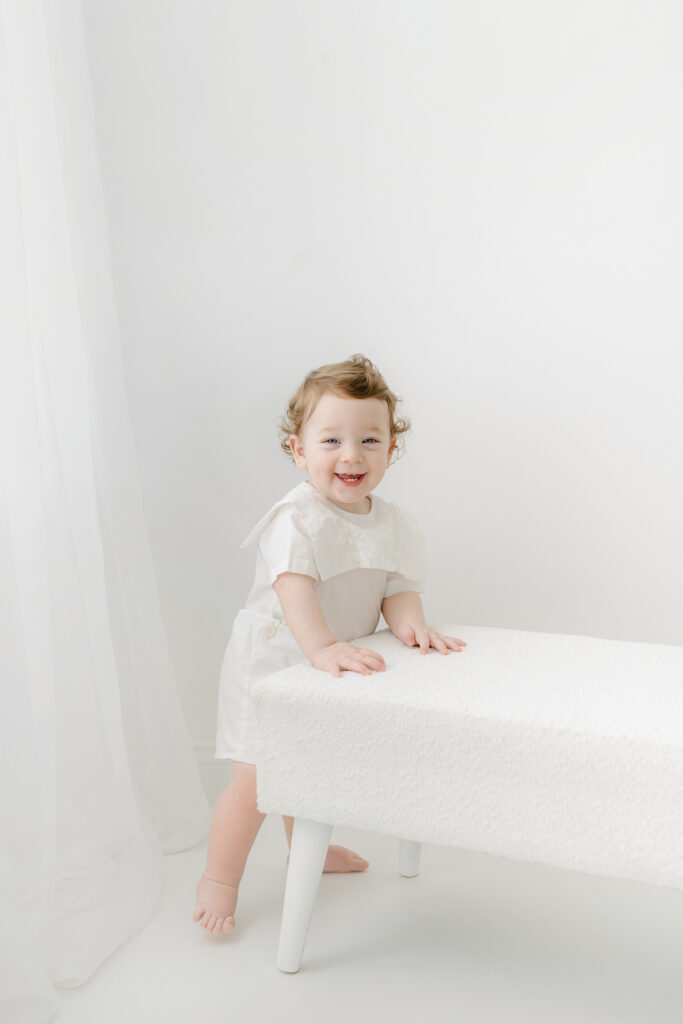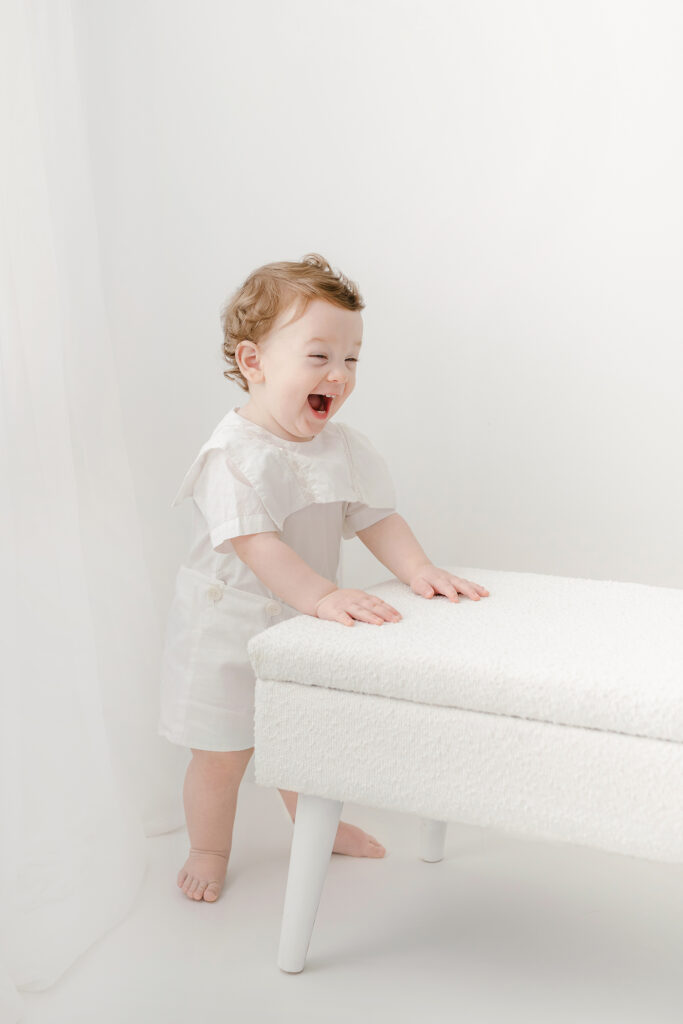 Laura Cardan’s studio setting we used for Baby Holder’s session was clean and simple. A white backdrop keeps the focus on your child. It also photographs beautifully for fine art prints. You won’t look at these photos in 10 years and cringe at a trendy backdrop choice.