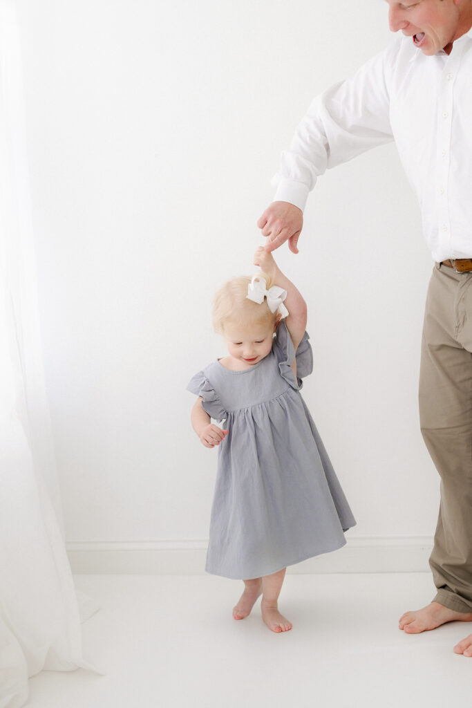 The fact is babies and toddlers can have fun anywhere. As long as you’re willing to let loose of the preconceived notions of stiff, studio sessions fun memories will be made. We will have tickle parties, twirl like ballerina’s, ride on shoulders and jump on the bed.