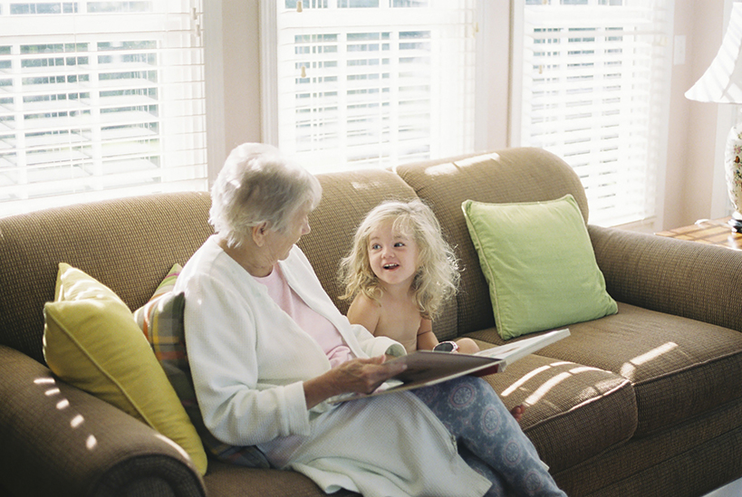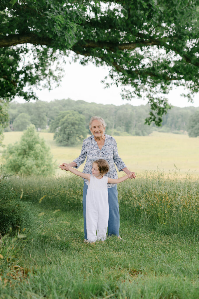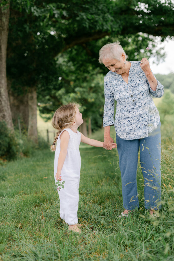 Summer and fall work great for outdoor shots with nice light and comfortable temps. Winter can create cozy indoor moments with grandparents reading or baking with grandkids.