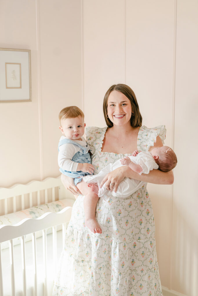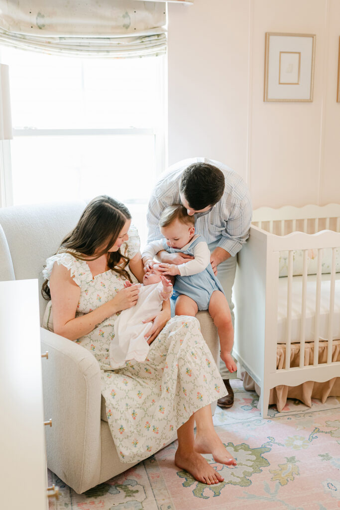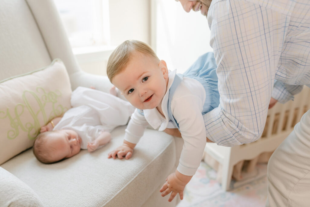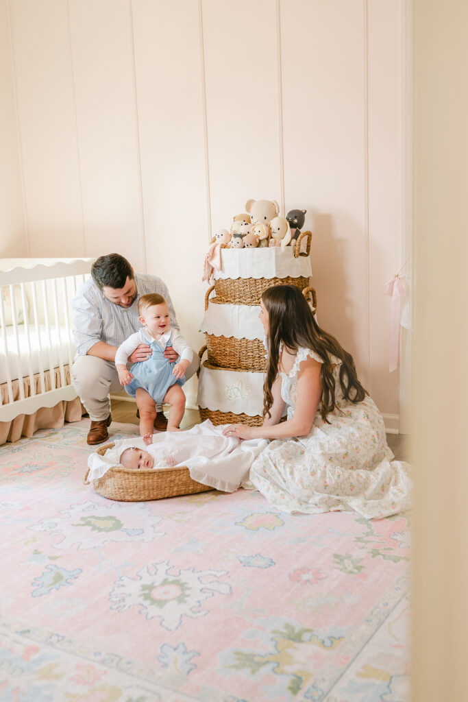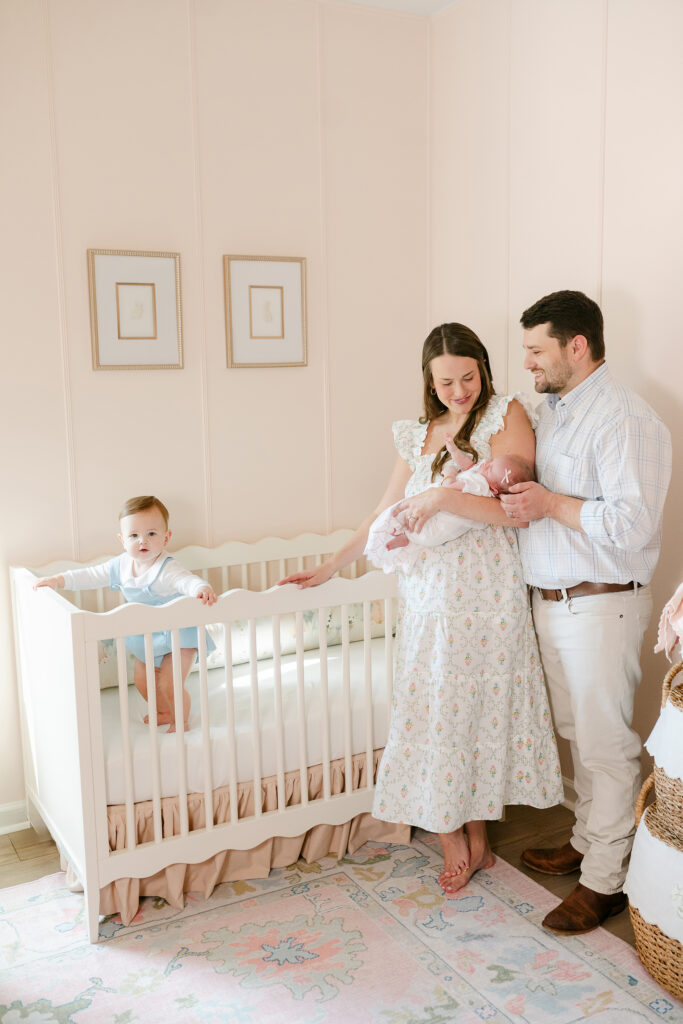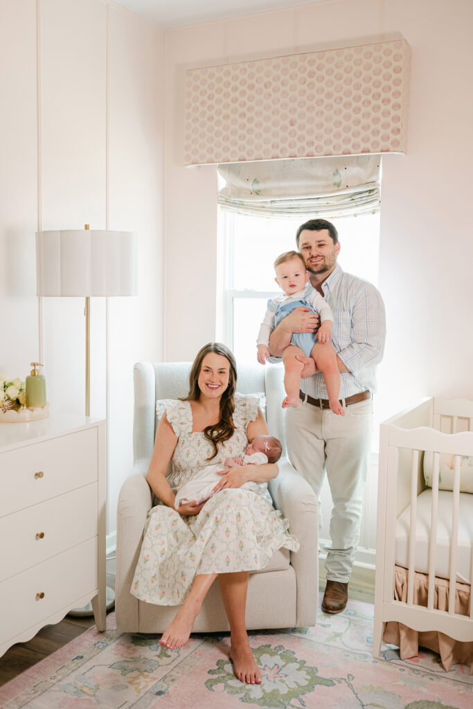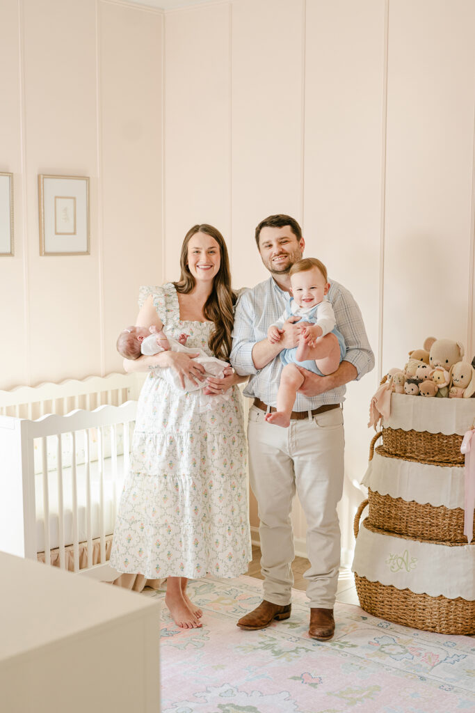 Full family setups bring everyone together. Mom, dad, siblings, and baby. These are the photos that go on the wall and stay there for years.