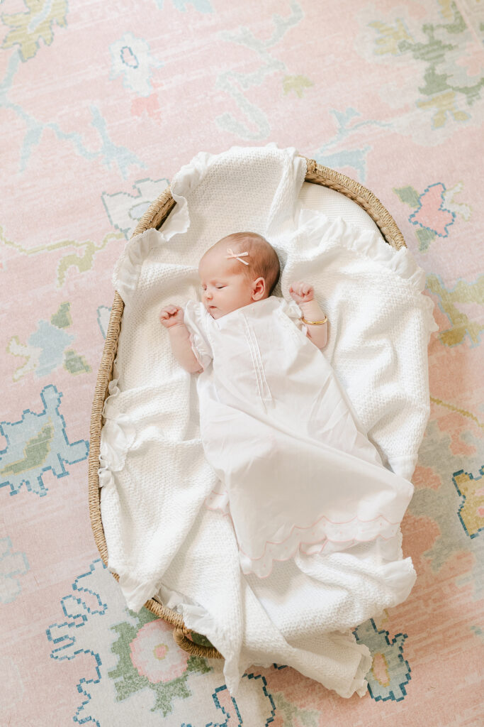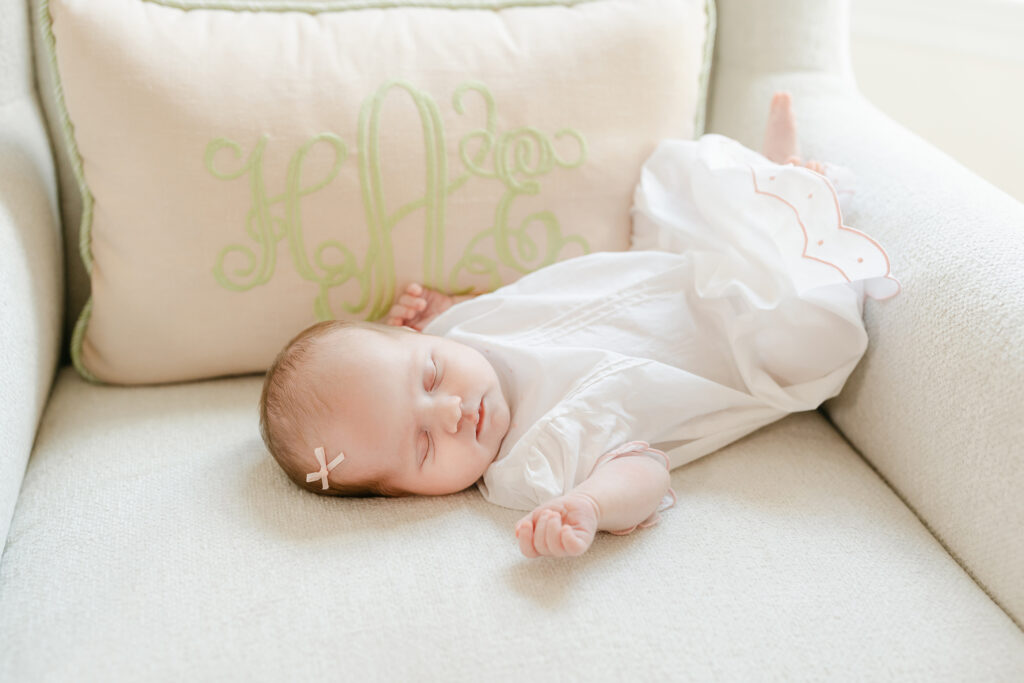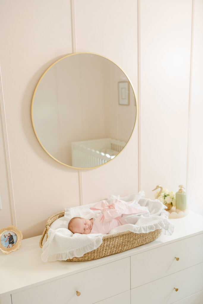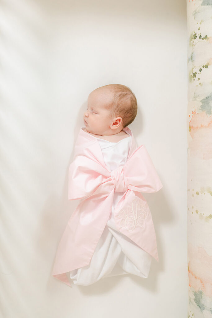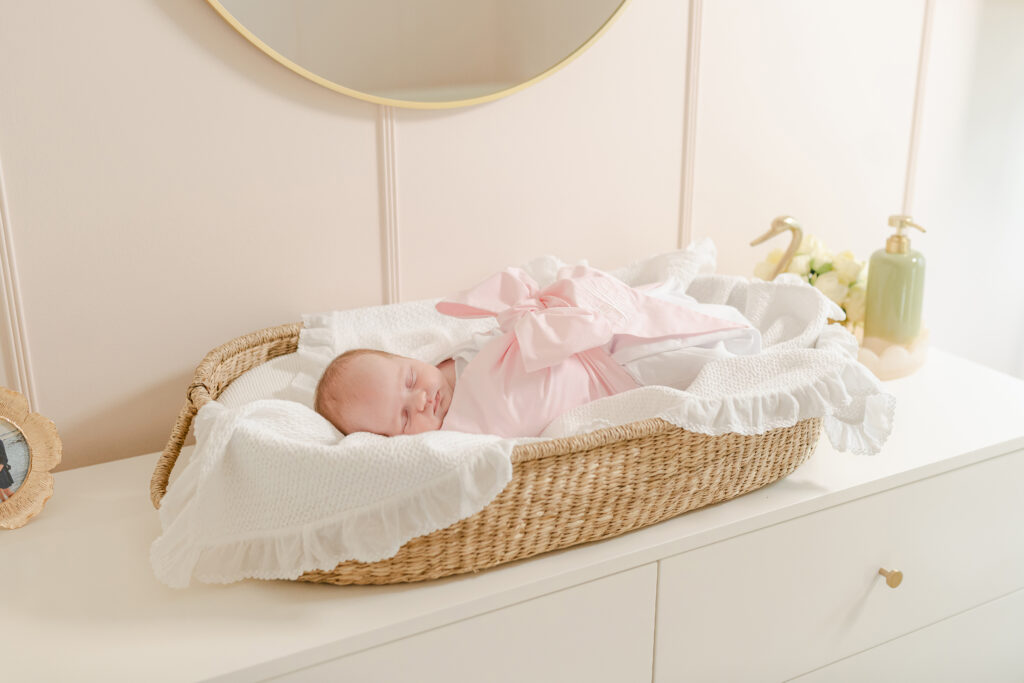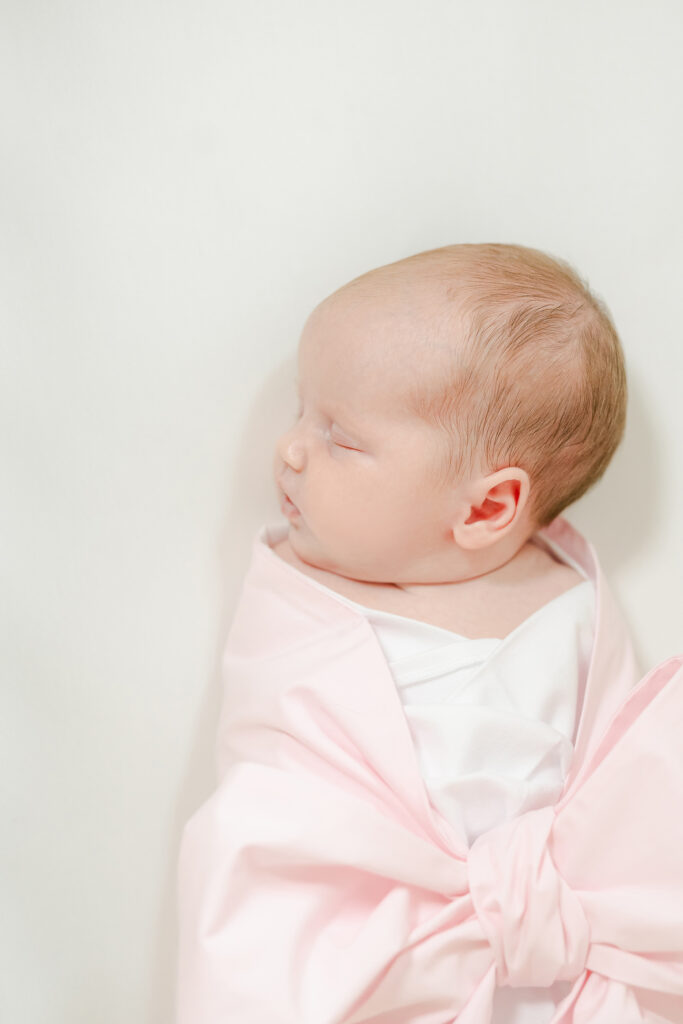 The best time to book is before your baby even arrives. Most Montgomery newborn photographers, including Laura, get booked out weeks in advance. Once your baby is here, you want to shoot within the first 5 to 14 days. That’s when babies sleep the deepest and curl up the easiest.