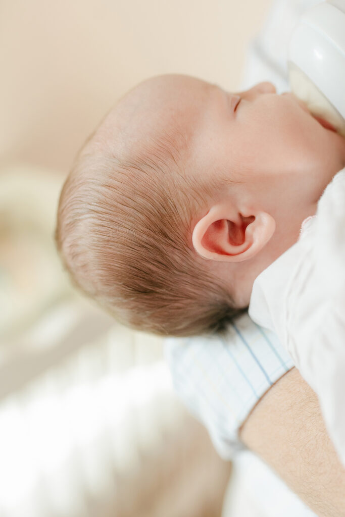 It happens all the time. Feeding breaks, diaper changes, and cuddle time are all part of the session. There’s no rush. A good newborn photographer knows how to wait it out.