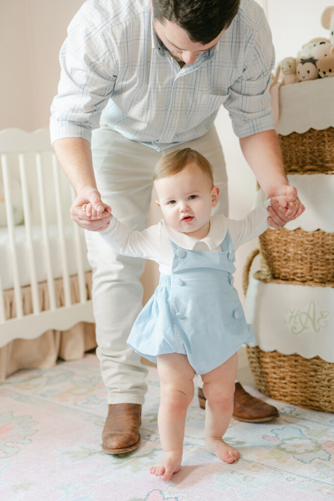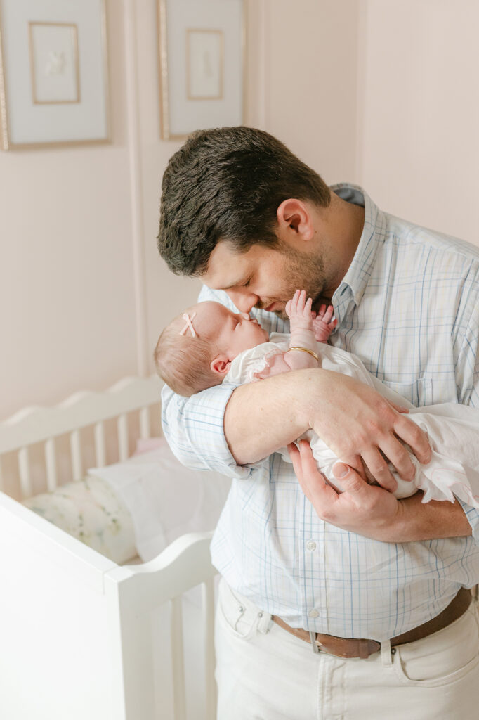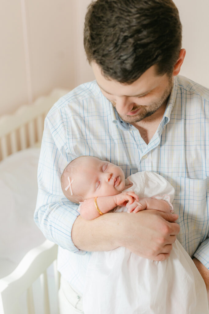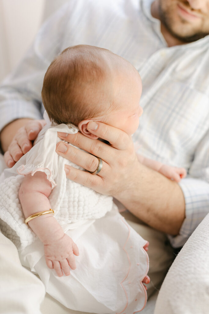 Parent and baby poses are some of the most loved. Big hands holding tiny feet. Baby resting in dad’s arms. Mom cradling a brand new face. These capture the size difference in a way you’ll want to remember forever.