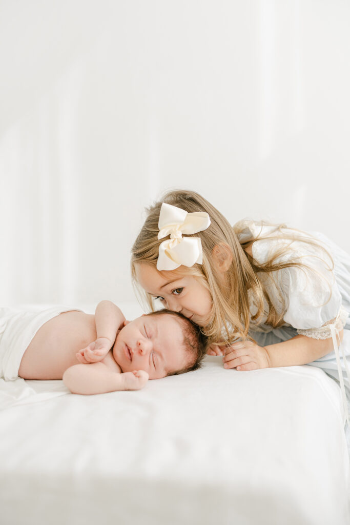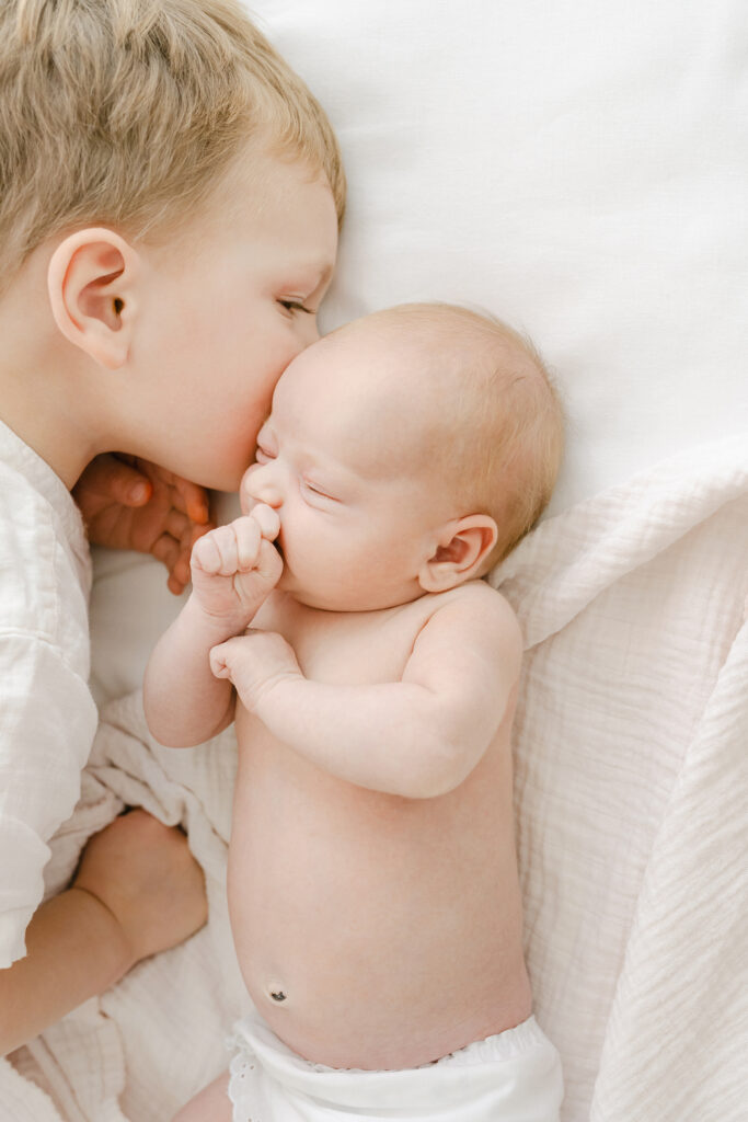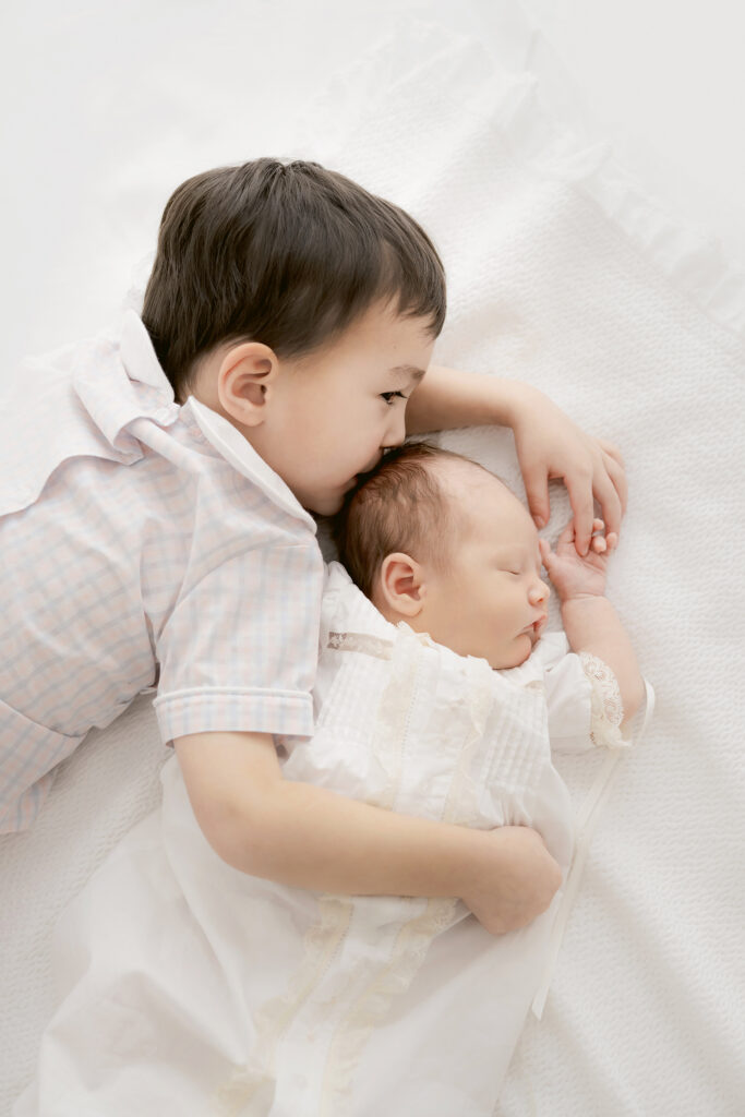 Getting great photos of your newborn with their toddler sibling is all about safety and natural moments. Here are some tried-and-true poses that work well for capturing that new sibling bond: