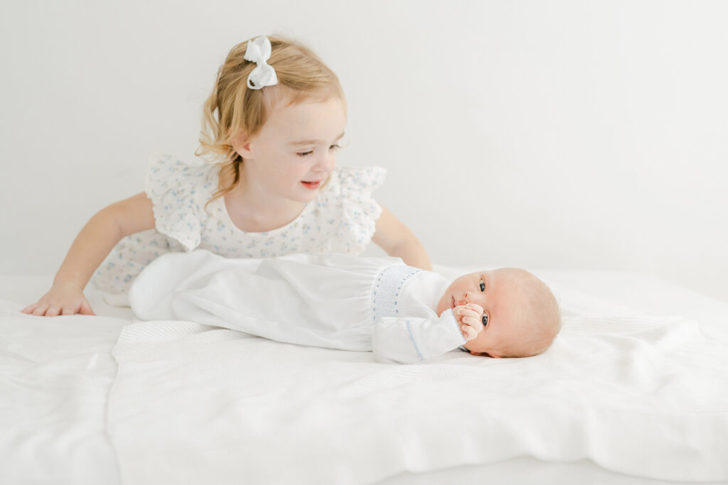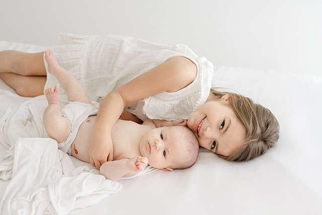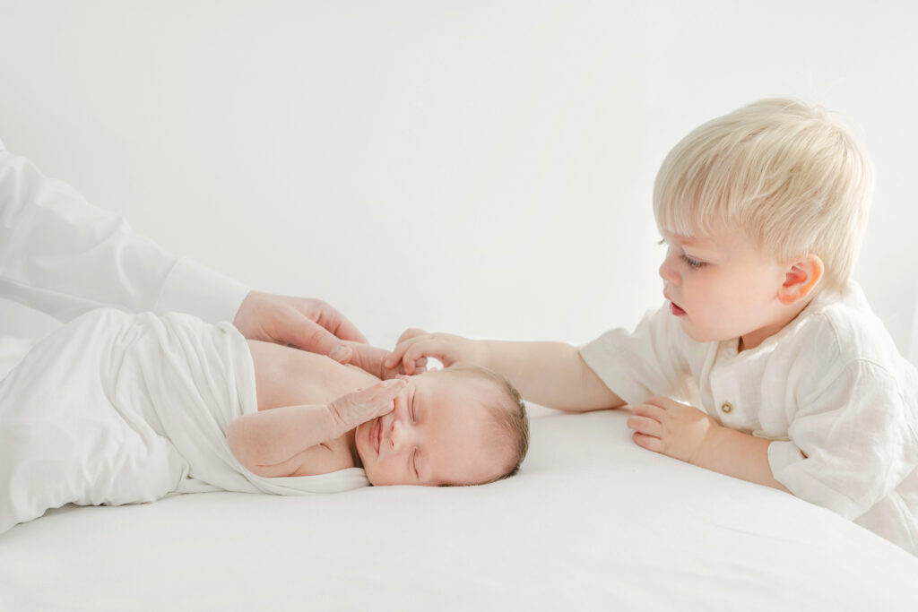 Remember that toddlers can be unpredictable. The most natural shots often happen in those unplanned moments when your older child is just being themselves with their new baby brother or sister. Staying flexible and setting reasonable expectations for them will help.