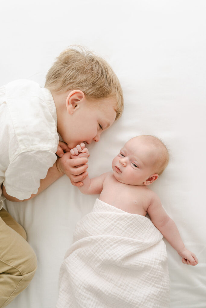 Getting photos of your newborn with their toddler sibling takes some planning. But don’t worry – with a few simple steps, you can set up a session that captures this special time.